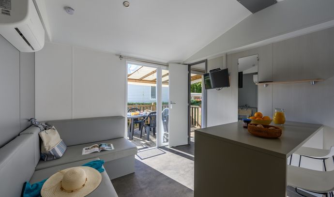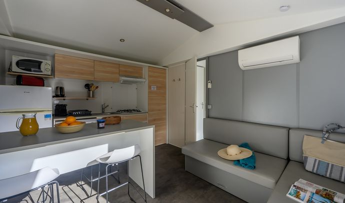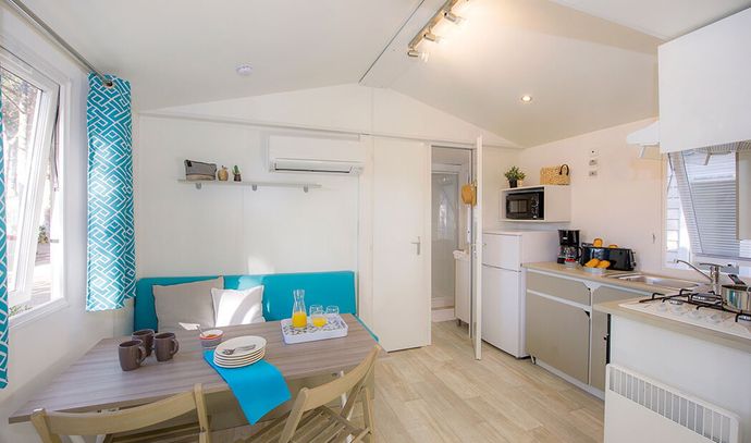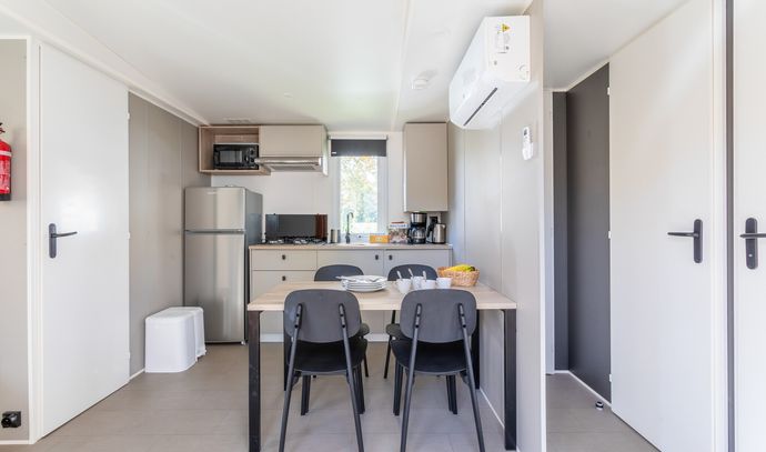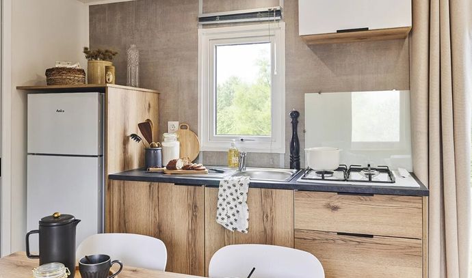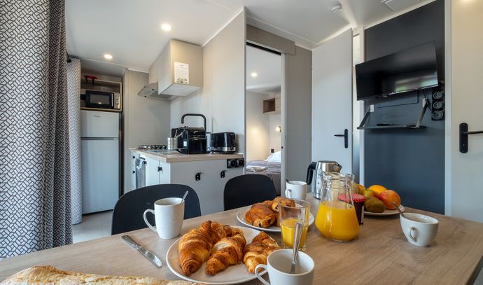 Vous serez logés dans des mobil-homes modernes, totalement équipés et bien agencés, assurant un séjour tout confort.