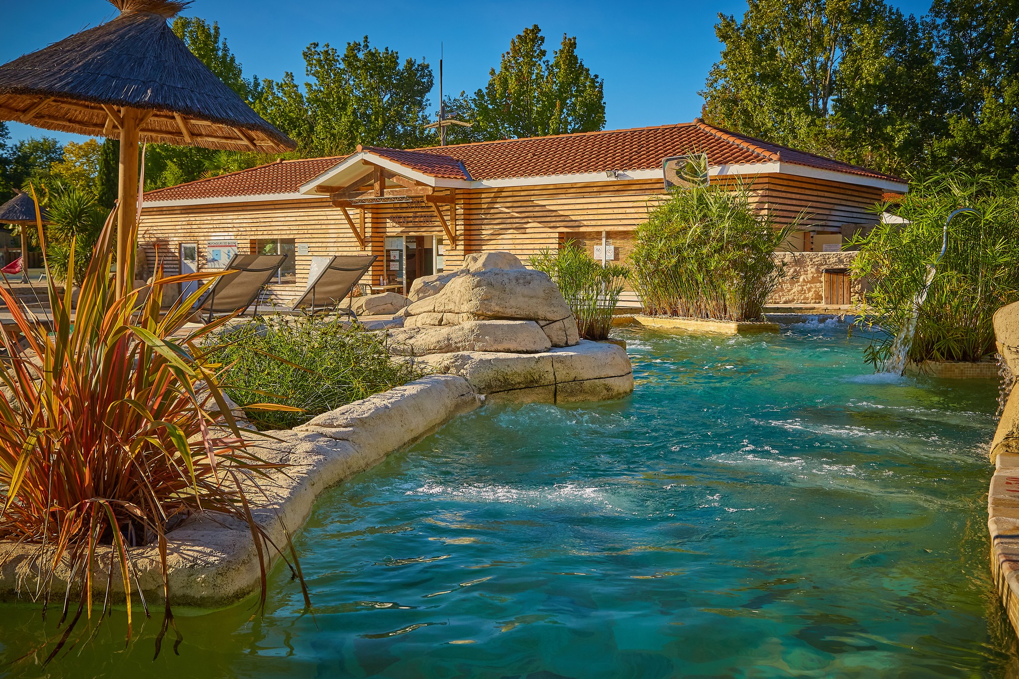 La rivière tropicale à courant - Réservé aux adultes, ce bassin extérieur vous permettra de vous prélasser sur des banquettes pleines de bulles ou de vous détendre sous les jets. Fermez les yeux et vous êtes au paradis !